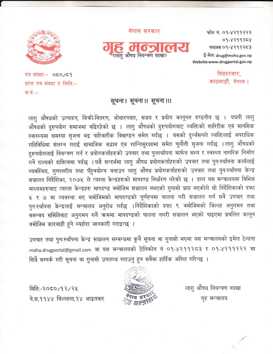 गृह मन्त्रालयको सूचन...