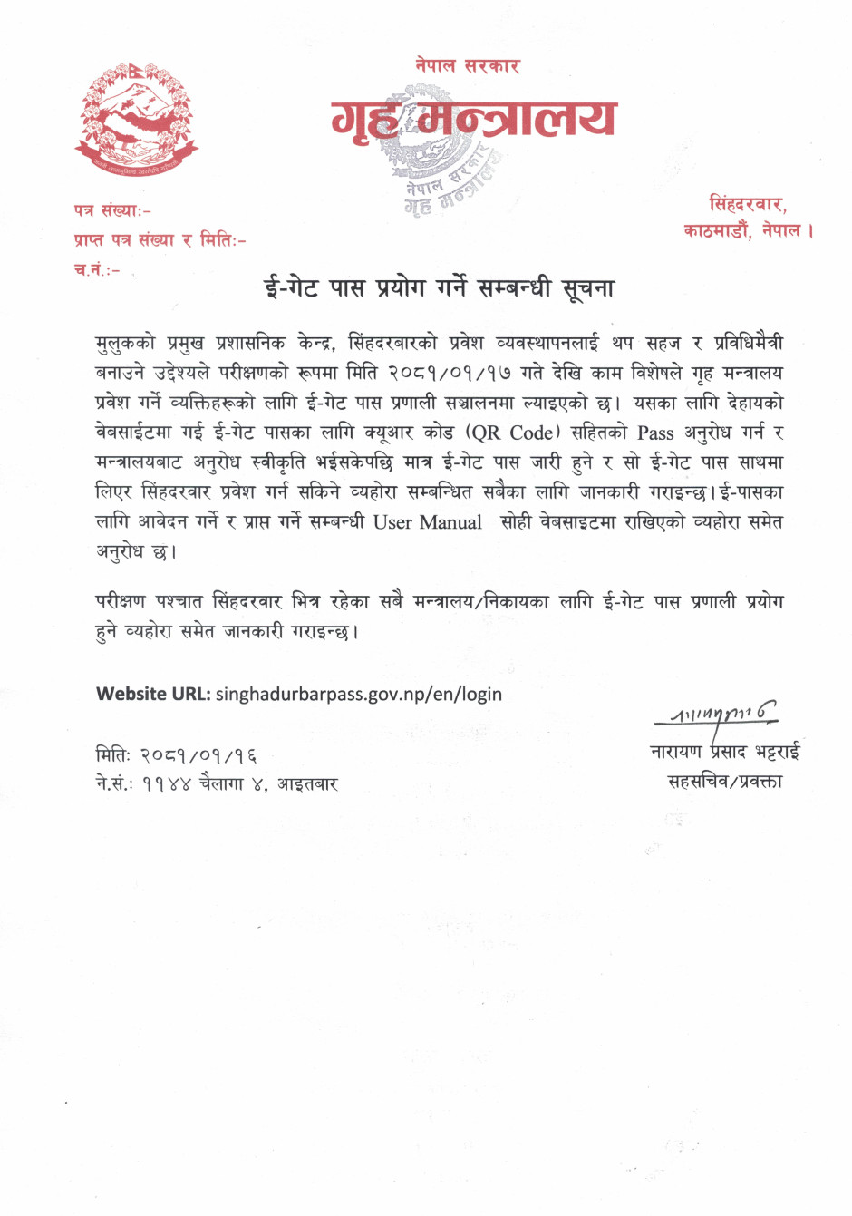 ई-गेट पास प्रयोग गर्ने सम्बन्धी सूचना
