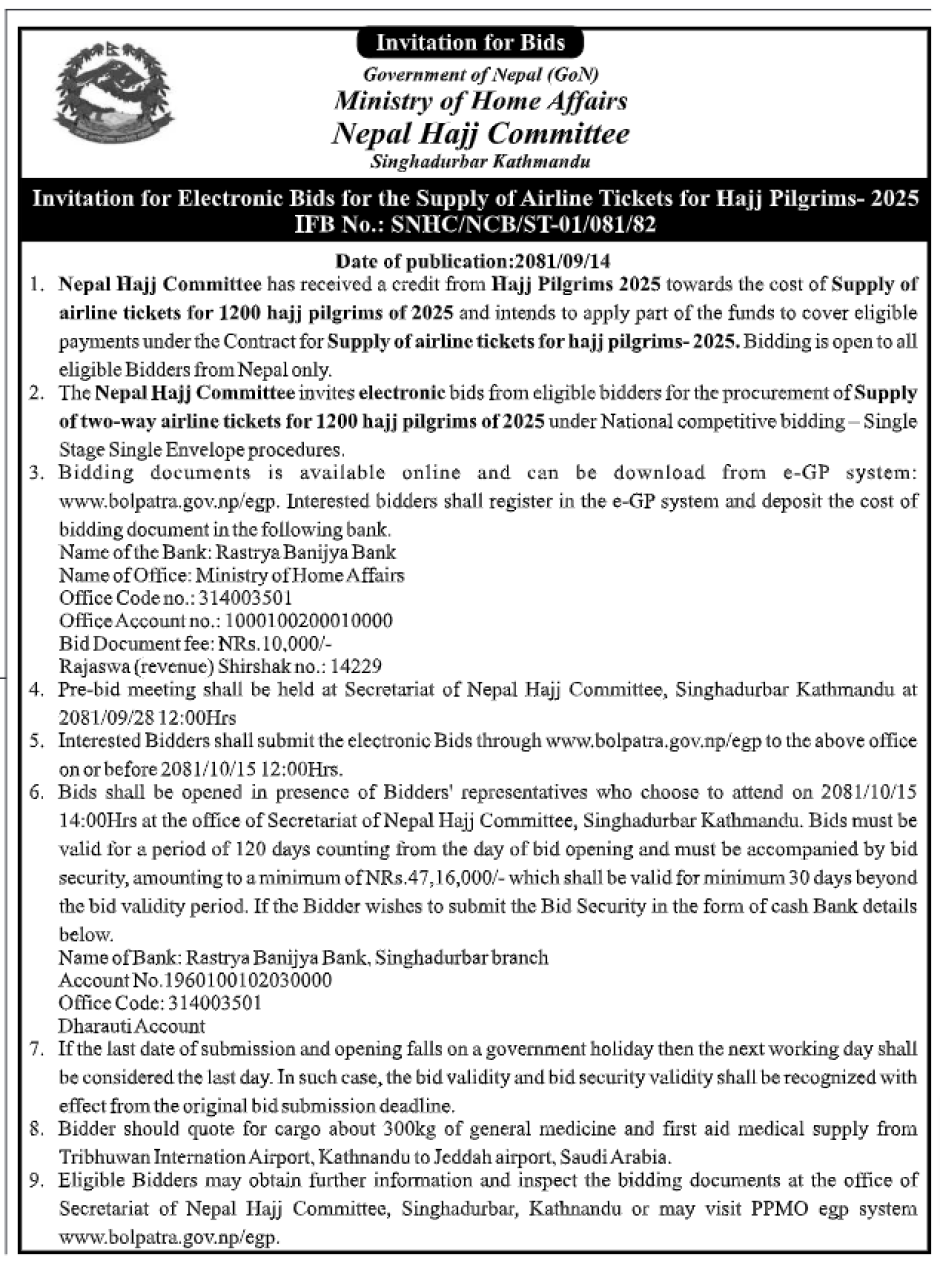 Invitation for Electronic Bids for the supply of Airline Tickets for Hajj Pilgrims-2025