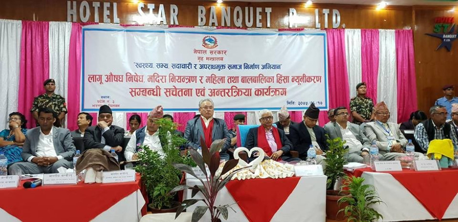 गृहमन्त्रालयले सुरु गरेको "लागुअौषध निषेध, मदिरा नियन्त्रण र महिला तथा बालबालिका हिङ्सा न्युनिकरण अभियान" अन्तर्गत अाज प्रदेश नं ३ काे चितवनमा अायाेजित कार्यक्रममा ...........