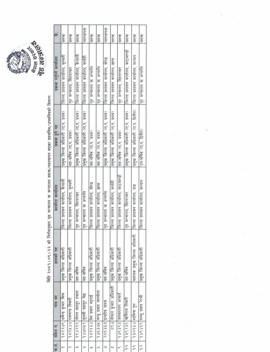 गृह मन्त्रालयको मिति २०८२।१२।२२ को निर्णयानुसार सुरुवा/पदस्थापन भएका रा.प. प्रथम र रा.प.द्वितीय श्रेणीका कर्मचारीहरूको विवरण