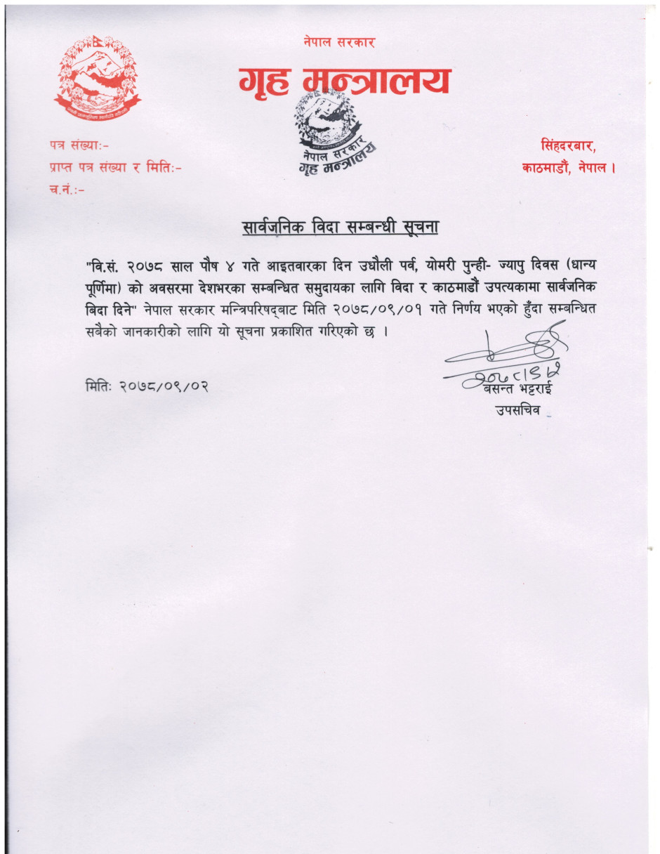 २०८१ सालको सरकारी तथा सार्वजनिक विदा