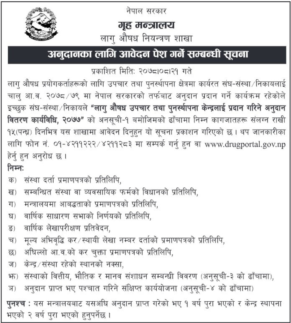 अनुदानको लागि आवेदन पेश गर्ने सम्बन्धी सूचना