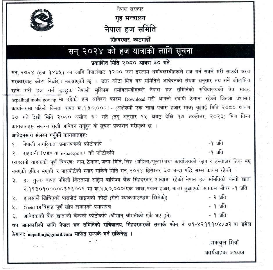 अनुदानको लागि आवेदन पेश गर्ने सम्बन्धी सूचना