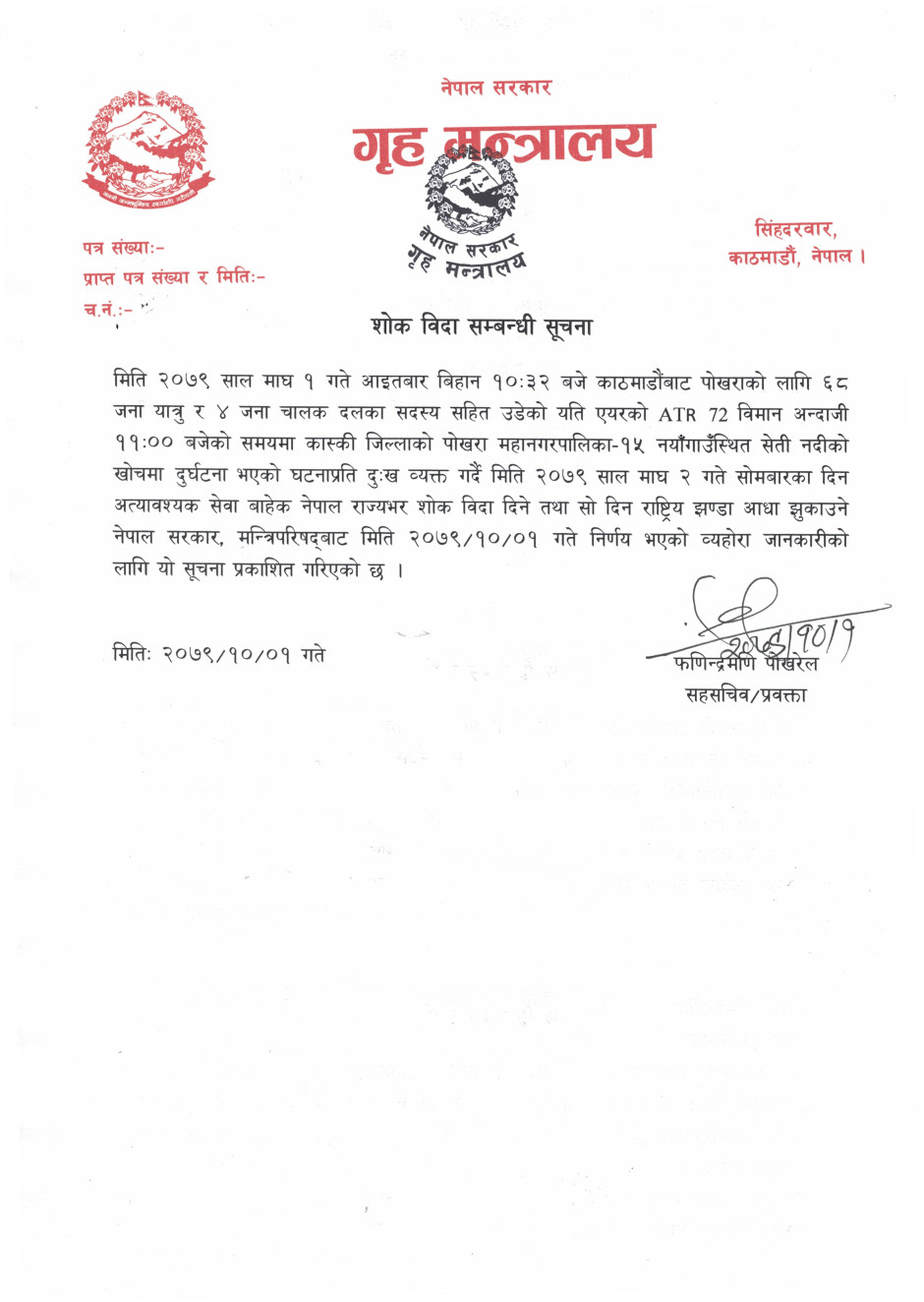 गृह मन्त्रालयसँग सम्बन्धित गुनासोका लागि सम्पर्क नम्बर