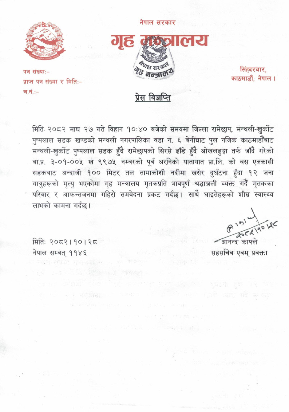 गृह मन्त्रालयसँग सम्बन्धित गुनासोका लागि सम्पर्क नम्बर