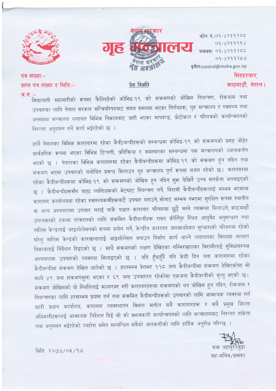 प्रेस बिज्ञप्ति