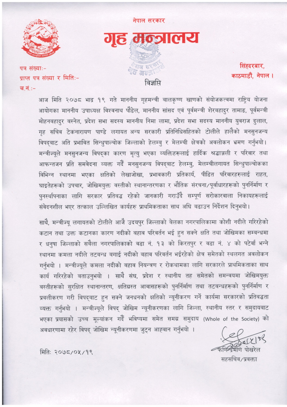 प्रेस बिज्ञप्ति