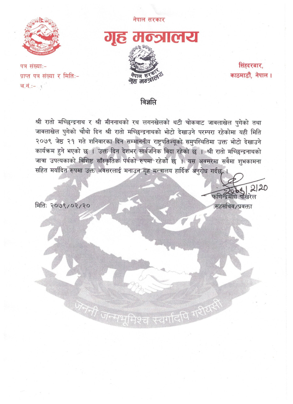 रातो मच्छिन्द्रनाथको जात्रा सम्बन्धी प्रेस विज्ञप्ति