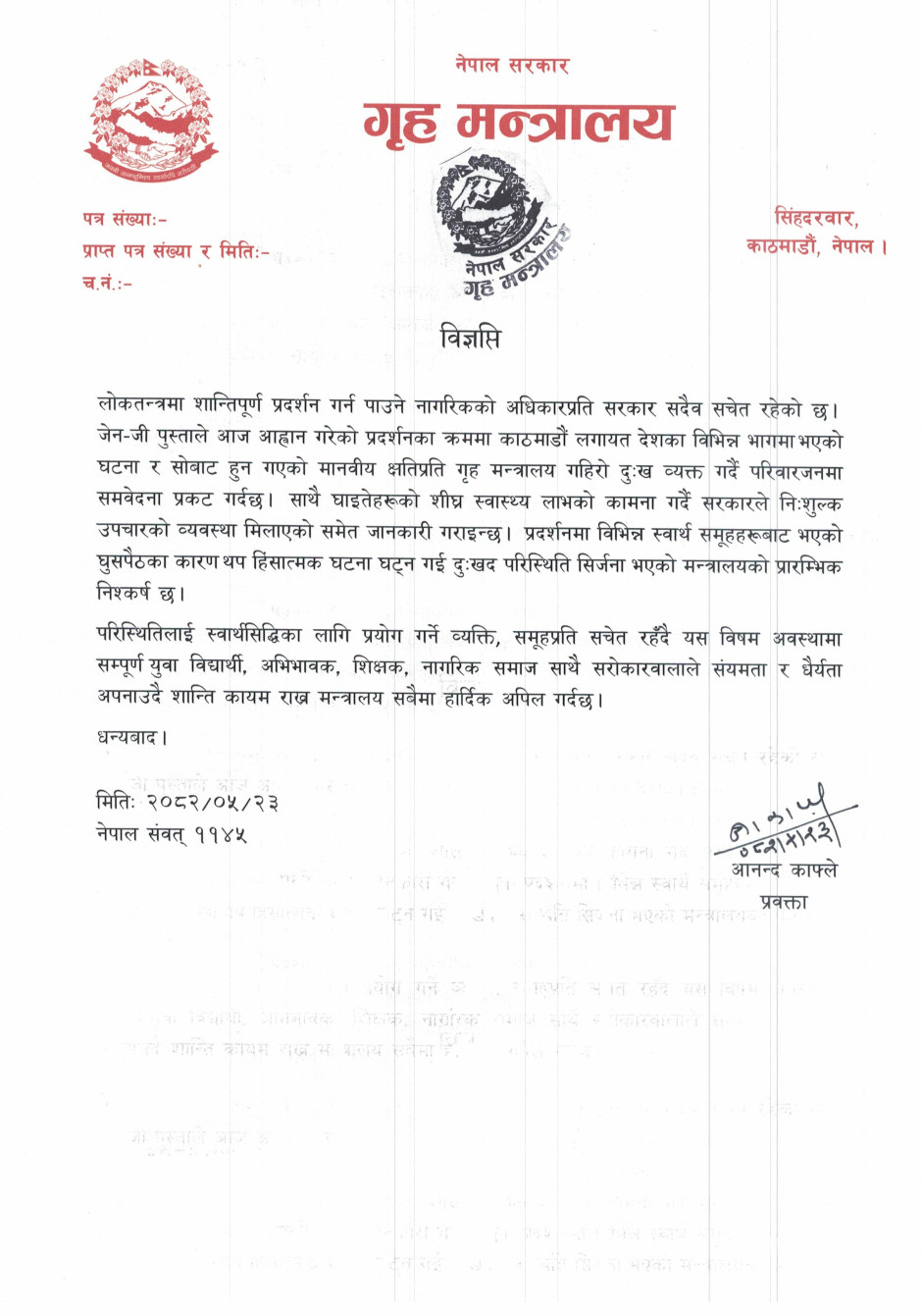 भाद्र २३ र २४ को घटना सम्बन्धी जाँचबुझ आयोग २०८२ | विज्ञप्ति
