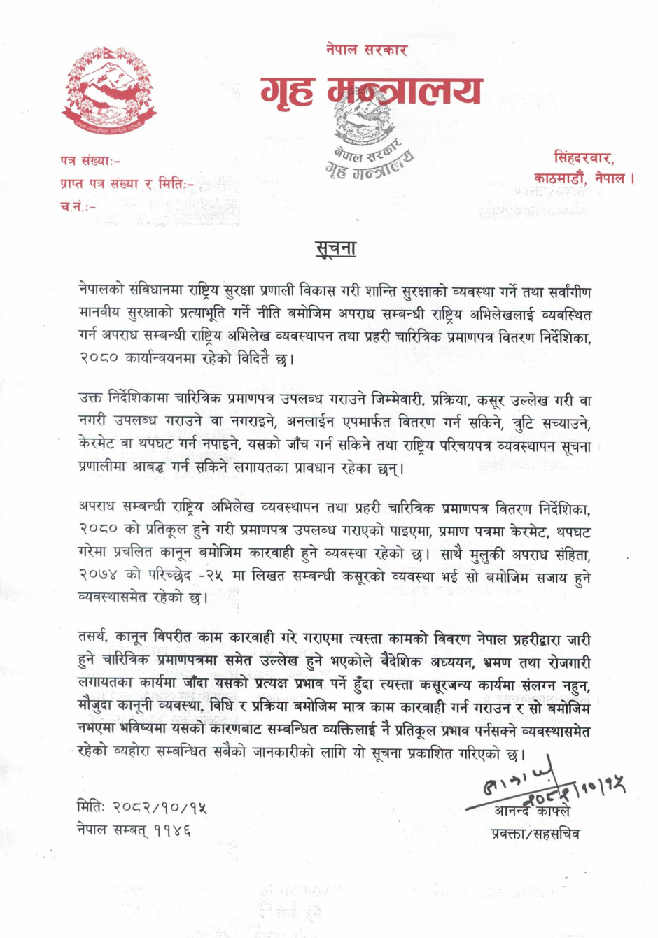 © सर्वाधिकार सुरक्षित गृह मन्त्रालय