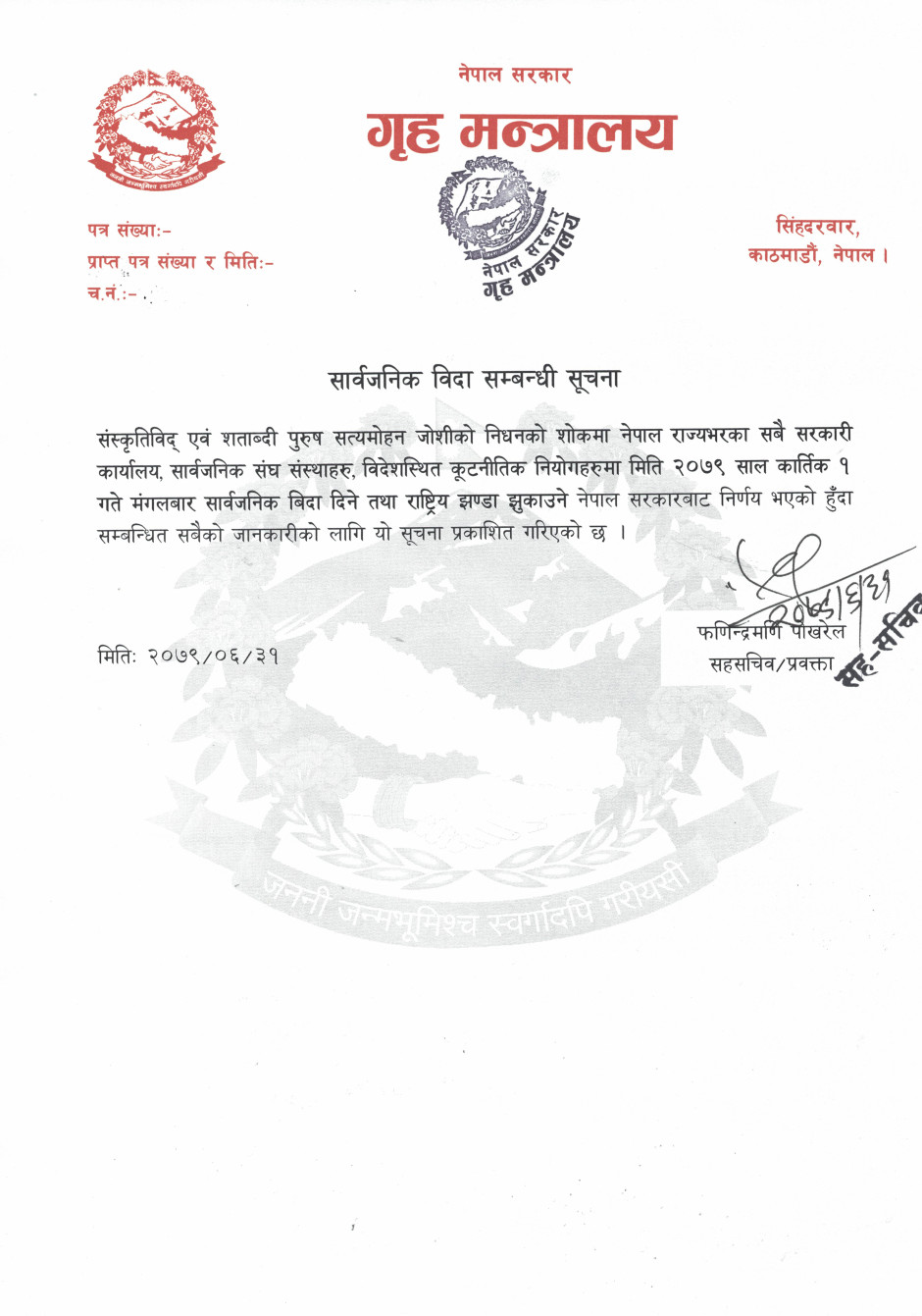 २०८१ सालको सरकारी तथा सार्वजनिक विदा