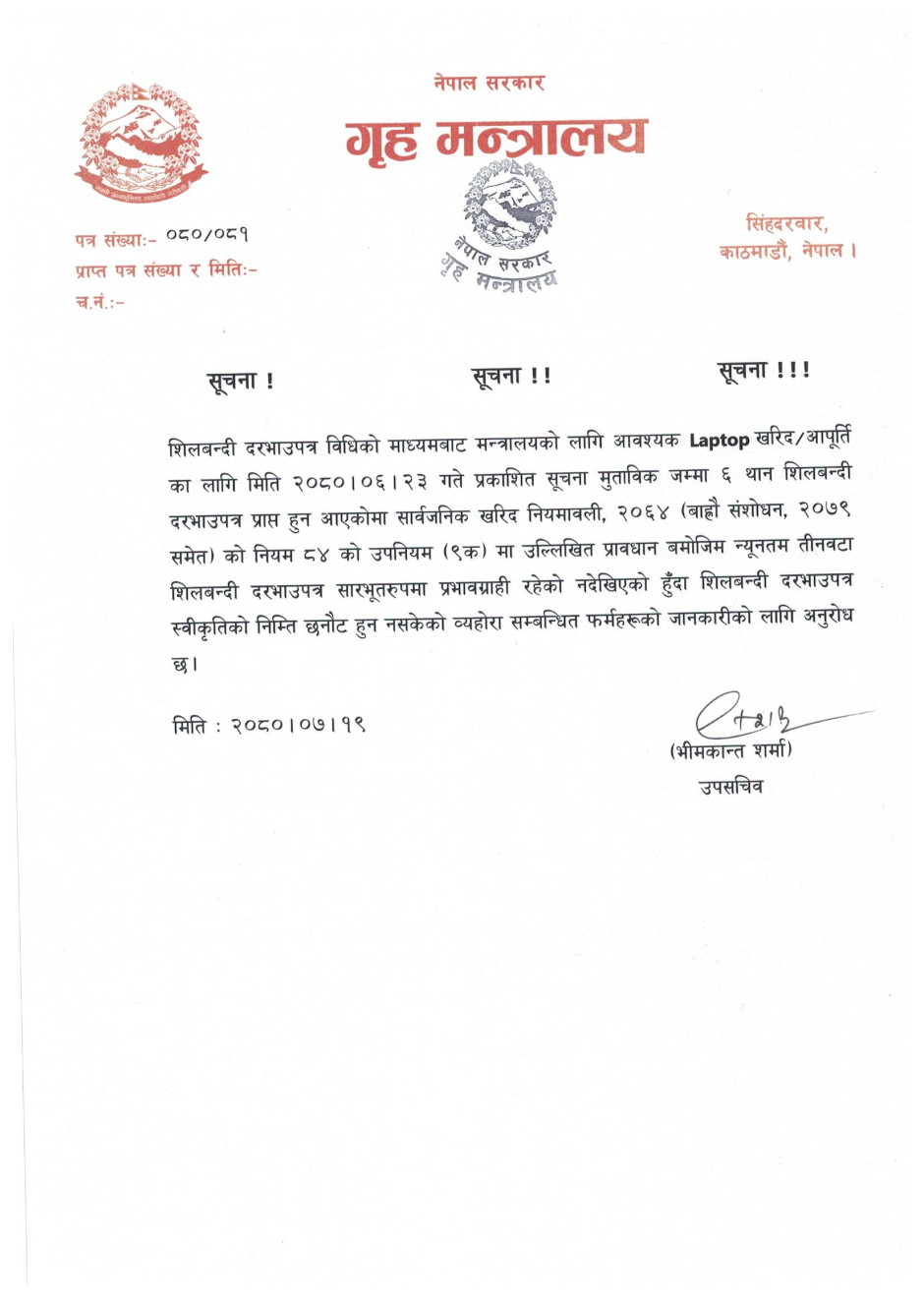 गृह मन्त्रालयसँग सम्बन्धित गुनासोका लागि सम्पर्क नम्बर