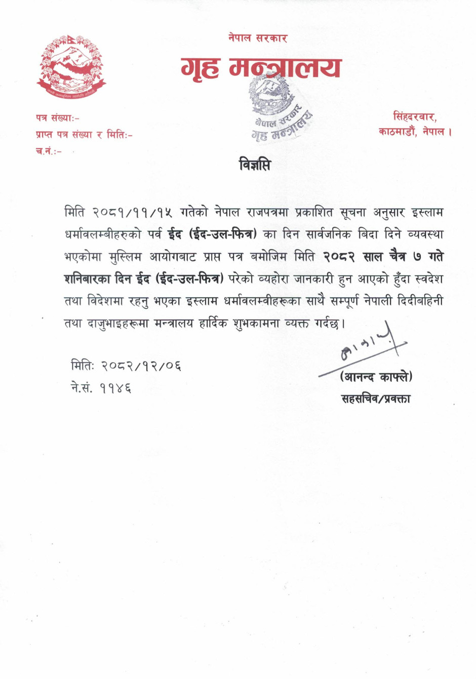 २०८२ सालको सरकारी तथा सार्वजनिक विदा