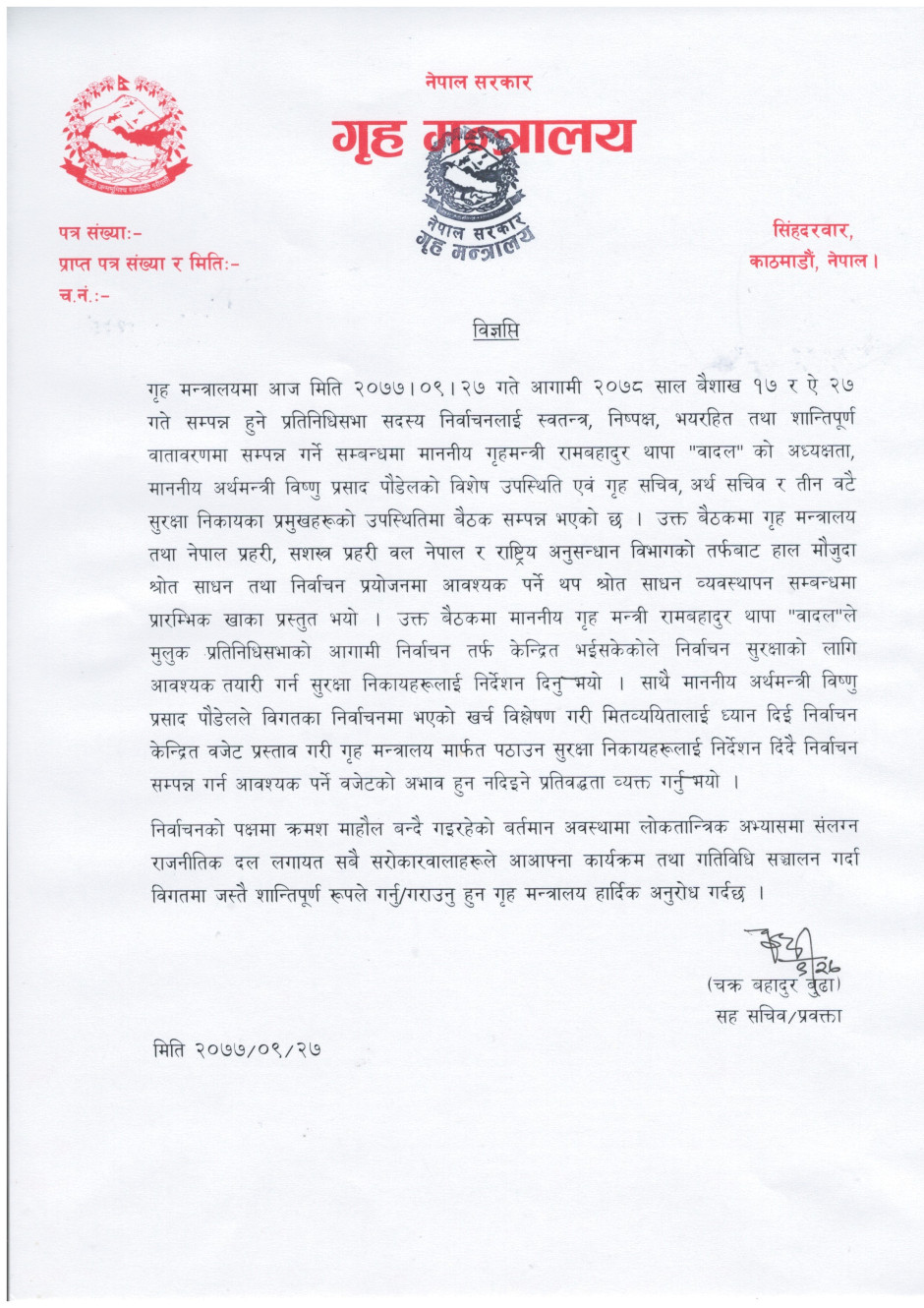प्रेस बिज्ञप्ति