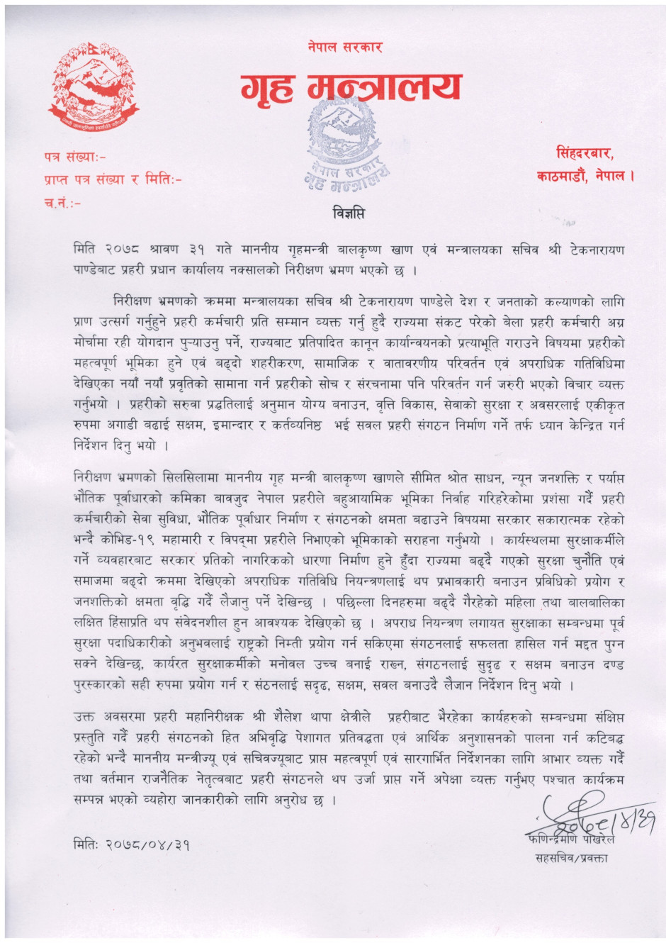 प्रेस बिज्ञप्ति