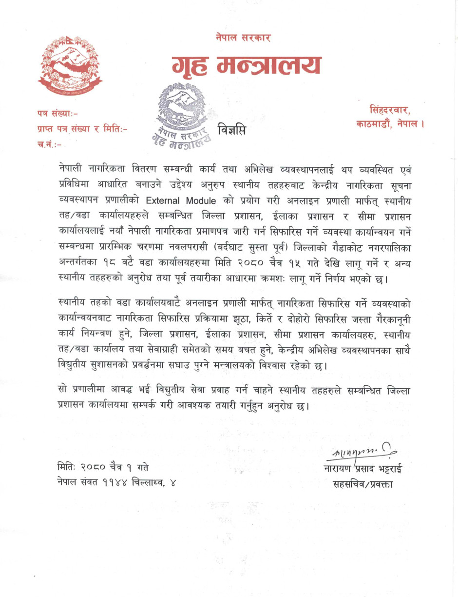© सर्वाधिकार सुरक्षित गृह मन्त्रालय